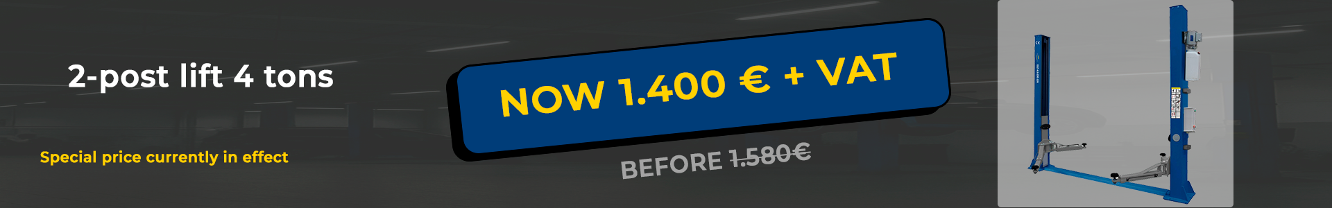 This car lift operates electro-hydraulically. It has been designed to work with medium and small-sized vehicles.